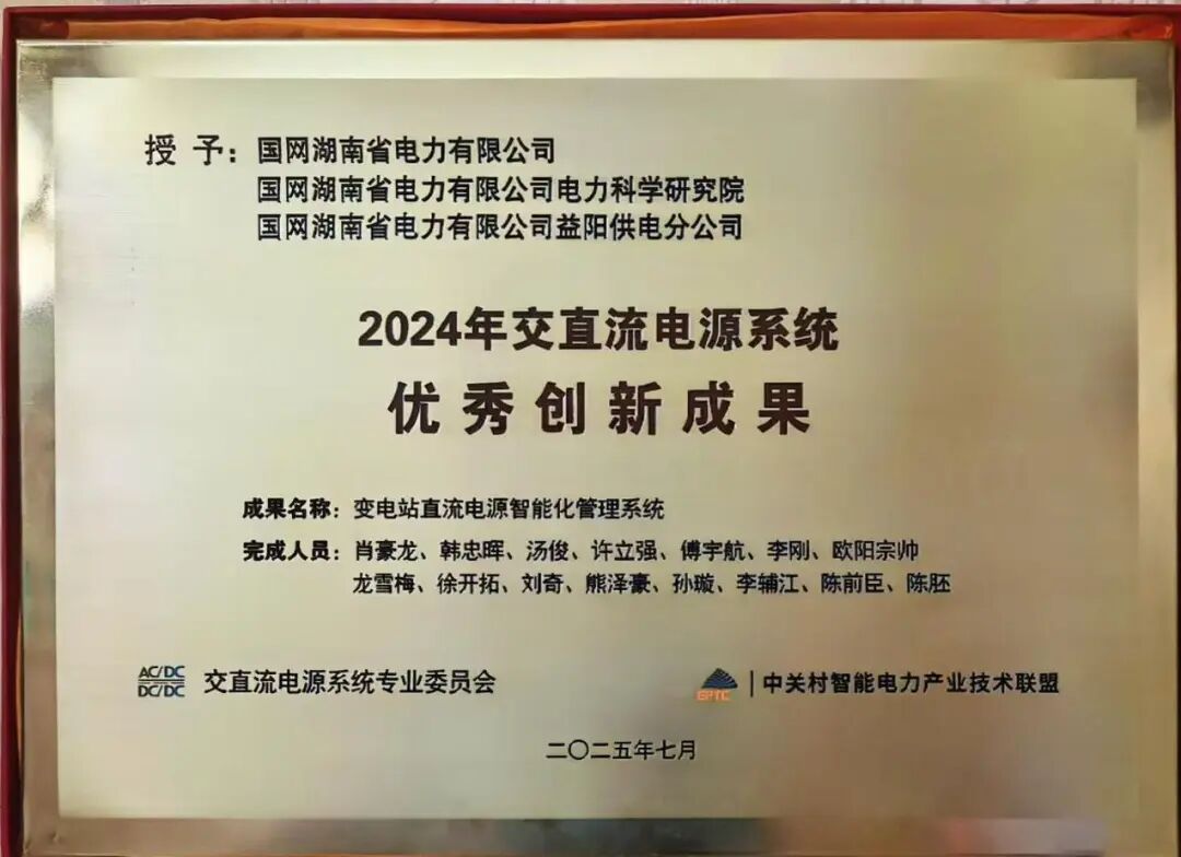 榮獲交直流電源系統(tǒng)優(yōu)秀創(chuàng)新成果獎