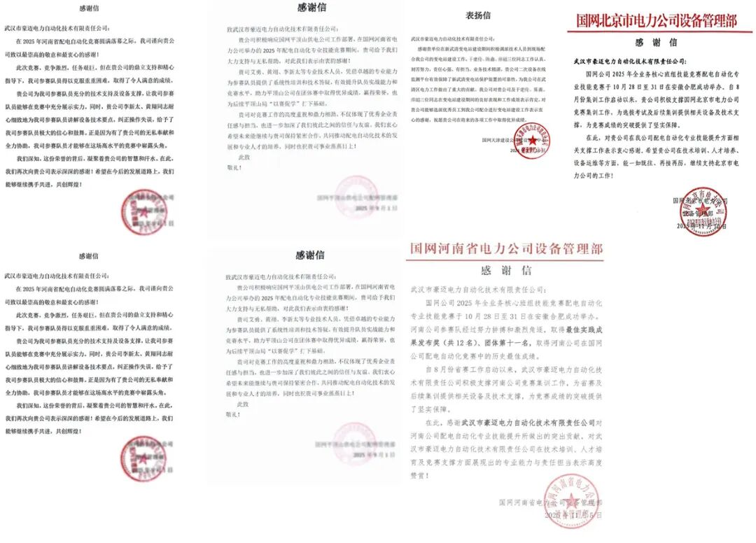 受邀為國家電網2025年設備運檢全業(yè)務核心班組配電自動化專業(yè)技能競賽、中國華電浙江第八屆職工業(yè)務技能大賽火電繼電保護競賽、國網河南省電力配電自動化專業(yè)技能競賽、南網超高壓公司二次回路作業(yè)安全規(guī)范技能競賽、2025年“湖北工匠杯”繼電保護技能競賽、2025年浙能集團繼電保護員職業(yè)技能競賽、國網北京市電力公司、國網天津市電力公司、國網冀北電力有限公司2025年度繼電保護專業(yè)技能競賽、國網上海市電力公司第三屆青年技能競賽暨2025年配電自動化專業(yè)技能競賽、國鐵集團北京局集團公司石家莊供電段鐵路供電系統(tǒng)職業(yè)技能競賽等提供賽事保障服務