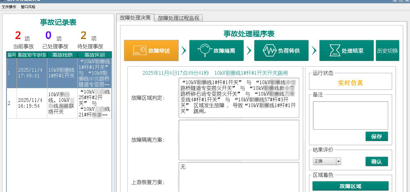 7) 由主站 人員 、現(xiàn)場測試人員,通過告警窗,核查主站系統(tǒng)采集故障信號是否完整并及時(shí),故障分析后彈出的故障隔離策略是否正確。